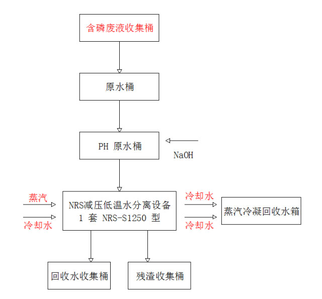 在生產(chǎn)金屬制品中會產(chǎn)生高濃度的含磷廢液。含磷廢液的產(chǎn)量每天約 20T,此種類含磷廢液含酸物質(zhì)較高,以傳統(tǒng)的工藝去除難以達到環(huán)保要求,且處理成本高、效果差,不能達標排放。